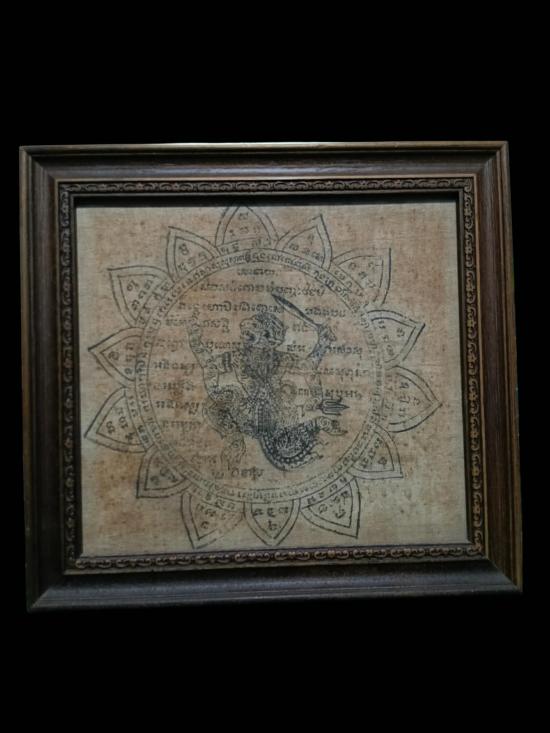 ผ้ายันต์หนุมานสี่กร ขนาด 9 x 10 นิ้ว ใส่กรอบบูชา เก่ามีอายุ ไม่ทราบสำนัก เข้มขลังครับ |