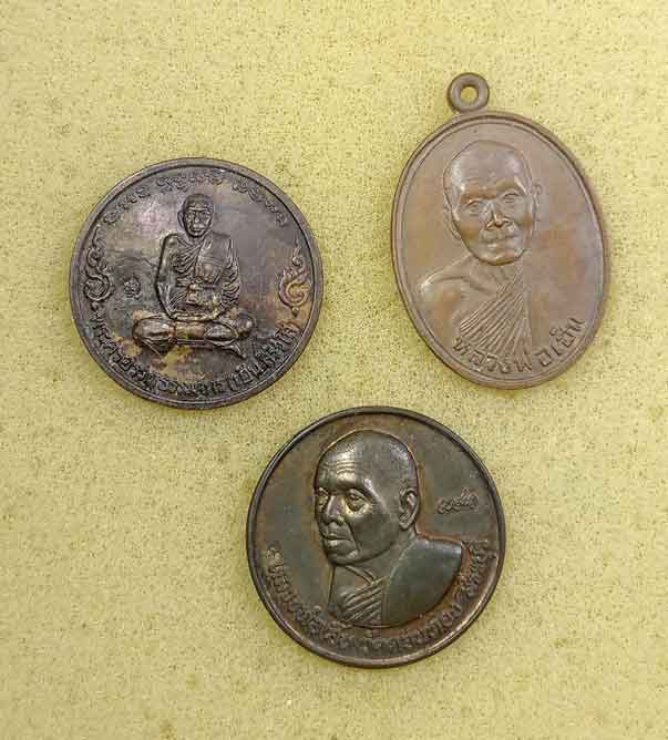เหรียญ 3 เหรียญ + พระผง ประจำวัน หลวงพ่อเฮ็น วัดดอนทอง สระบุรี + เหรียญหลวงพ่อจักษ์ วัดชุ้ง สระบุรี |