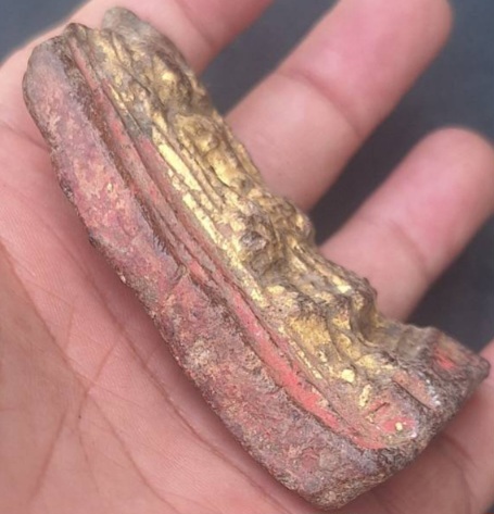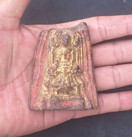 พระโคนสมอของแท้ สมัยอยุธยา เนื้อดินลงรักปิดทอง สภาพชำรุดส่วนบน มาพร้อมบัตรรับรองมาตฐานสูง สถาบันการันตีพระ ราคาวัดใจเคาะเดียวแดง