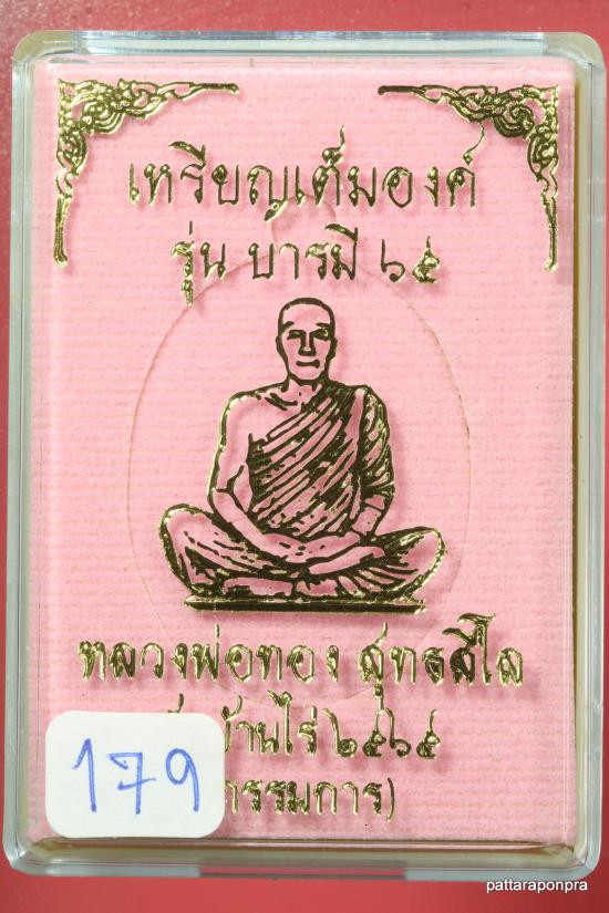 เหรียญหลวงพ่อทอง รุ่นบารมี ปี2565 เนื้อทองแดงไม่ตัดปีกหลังแบบ หมายเลข 179