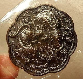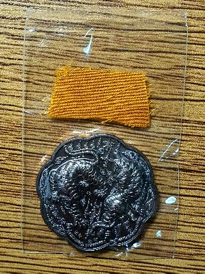 เหรียญสมิงยางตัน เนื้อทองแดง หลวงพ่อไฉน วัดสังฆปรีดี ในซีนเดิม พร้อมจีวรหลวงพ่อ |