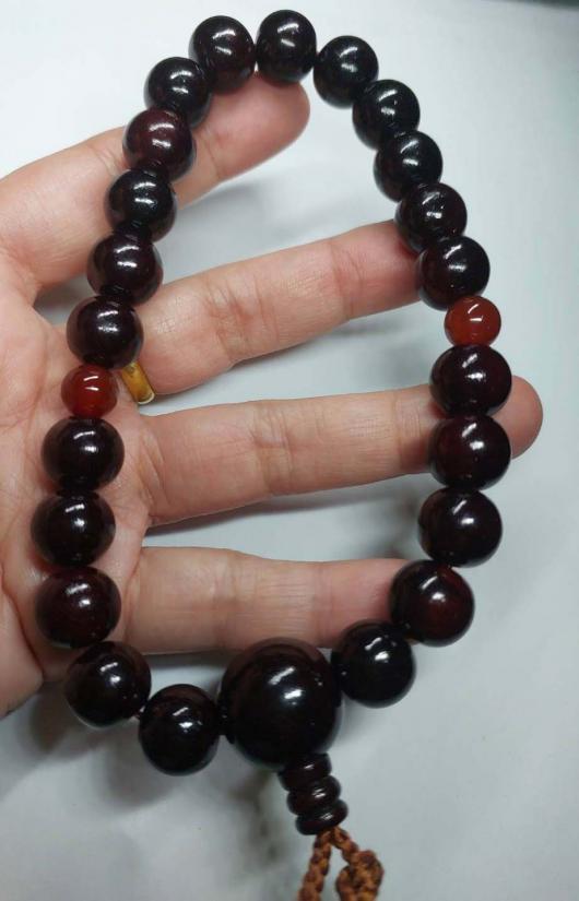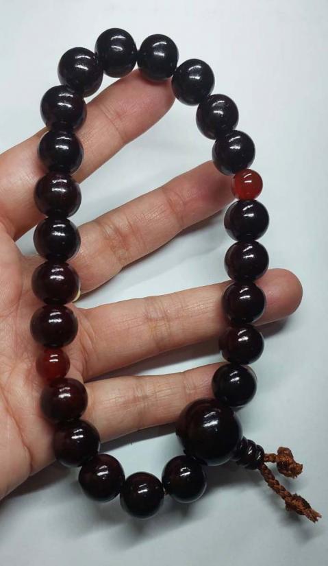 **ประคำข้อมือไม้จันทน์ลายเสือ กับ อาเกตส้ม 15 มิล สวยๆงาน คัดสวย ยาว 30 Cm.