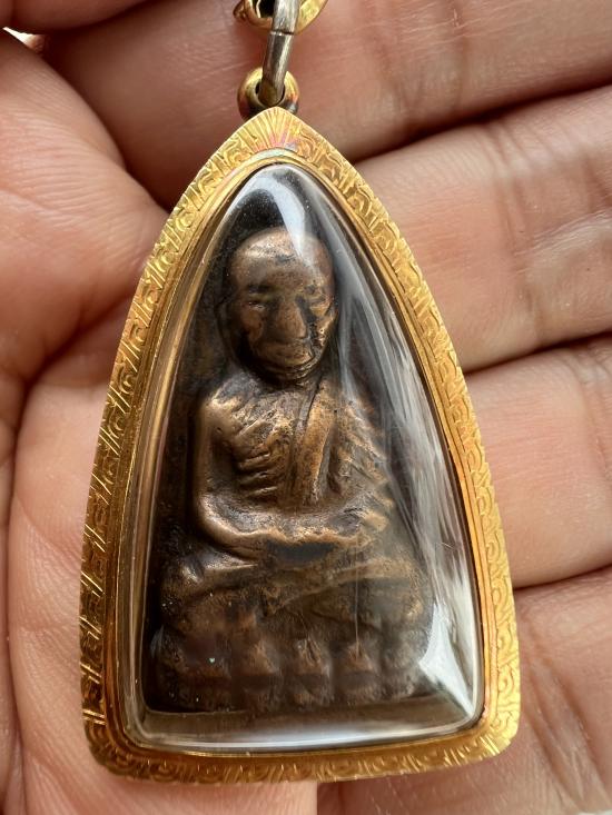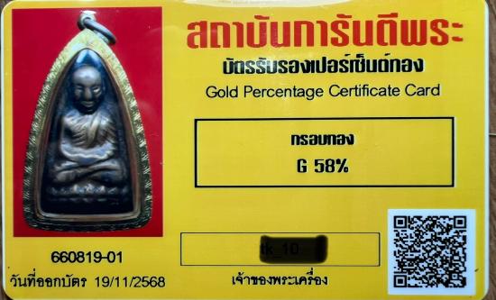 หลวงปู่ทวด พิมพ์ใหญ่ปั๊มซ้ำ เลี่ยมทอง(58%)ยิงเปอร์เซนต์โดยการันตีพระแล้ว พร้อมบัตรรับรอง TAG Gold card byโทน บางแค
