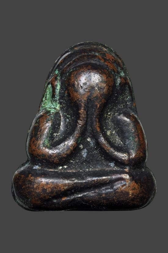 พระปิดตา เนื้อโลหะ หลังเรียบ เจ้าคุณวิเชียร วัดเครือวัลย์ ชลบุรี ปี2516(แจกทหารไปรบจ.น่าน).