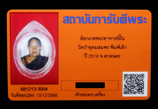 จัดสร้างในปี2518 มีหลายขนาดด้วกัน คือ ใหญ่ กลางเล็ก เเละมีทั้งฉากฟ้า,ขาว พร้อมกับเลี่ยมทองตั้งเเต่ออกจากวัด เเบบไม่มีเลี่ยมก็มี เเล้วเเต่ว่าใครจะจองเเบบพร้อมทองด้วยรึป่าว ซึ่งทุกองค์ถ้าเป็นเเบบเลี่ยมทองทางผู้จัดทำจะถวายให้ท่านพระอาจารย์จารให้ (องค์นี้เป็นเเบบพิมพ์เล็ก เจ้าของเดิมได้นำเส้นเกศาอาจารย์ฝั้น ติดเอาไว้เดิมๆที่ด้านหลัง เลี่ยมทองแบบ 3ห่วง สวยๆ) ครับผม ไม่ได้มีมาบ่อยครับนานปีจะเจอสักองค์ ทันหลวงปู่ประวัติชัดเจน เล่นหากันมาตรฐานสากล.