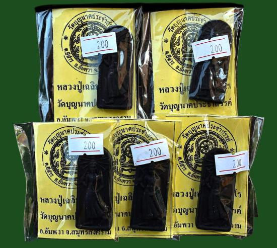 ชุด 5 องค์...พระขุนแผนชมตลาด (หนุ่มรุมรัก สาวลุ่มหลง) เนื้อผงดำหลังฝังตะกรุดเงิน ปี 2558 หลวงปู่เฉลิม วัดบุญนาคประชาสรรค์ จ.สมุทรสงคราม พร้อมซองเดิมจากวัด