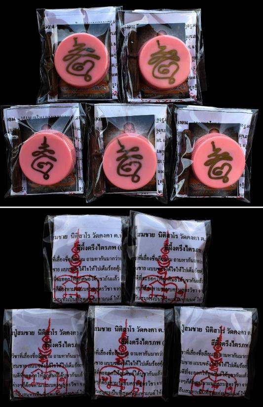 ชุด 5 รายการ...สีผึ้งตรึงไตรภพ (ตำรับเสน่ห์แรง) สร้าง 729 ชุด (แจกฟรีเสือครัวคู่สีผึ้งทุกตลับ) ปี 2553 หลวงปู่สมชาย วัดคงคา จ.กาญจนบุรี พร้อมซองรูปใบฝอยเดิมจากวัด