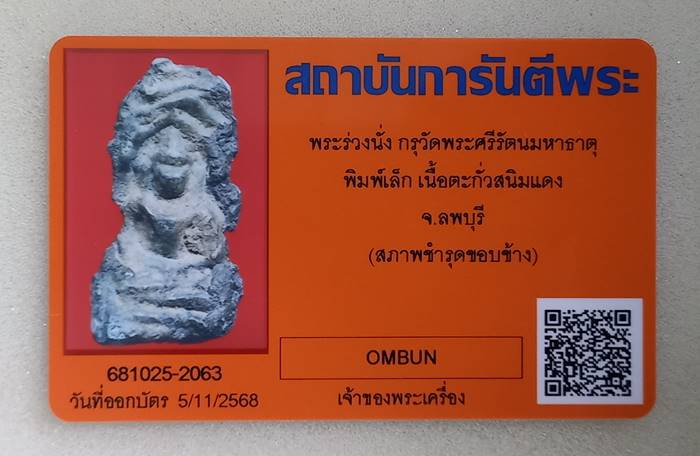 +++ พระร่วงนั่ง พิมพ์เล็ก เนื้อตะกั่วสนิมแดง กรุวัดพระศรีรัตนมหาธาตุ จ.ลพบุรี + บัตร G-Pra +++