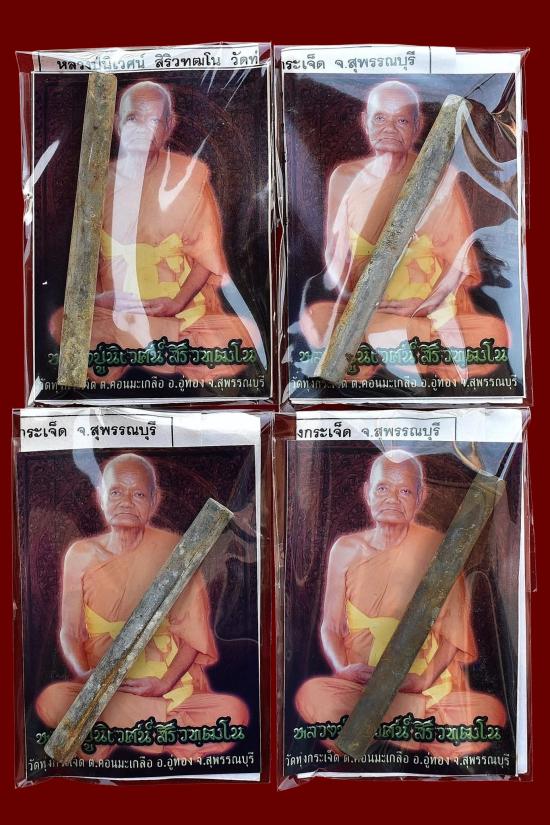 ชุด 4 ดอก...ตะกรุดปราบมารแช่น้ำมนต์มหาว่าน รุ่นแรก เนื้อตะกั่ว ปี 2551 หลวงปู่นิเวศน์ วัดทุ่งกระเจ็ด จ.สุพรรณบุรี พร้อมซองรูปใบฝอยเดิมจากวัด สภาพพระตามรูปที่ลงทุกประการ (ดอกนี้ยาวประมาณ 7.6 8 ซม.)