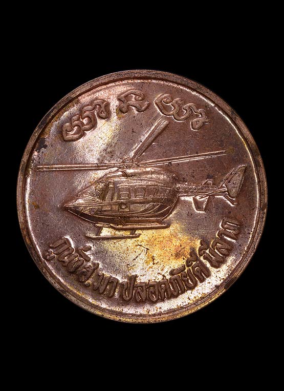 เหรียญหลวงพ่อคูณ วัดบ้านไร่ รุ่นกูนั่ง ฮ.มา ปลอดภัยดี มีลาภ ปี2537 เนื้อทองแดง สภาพสวย