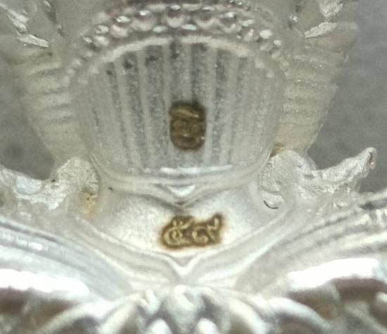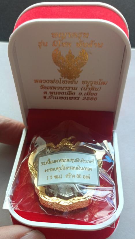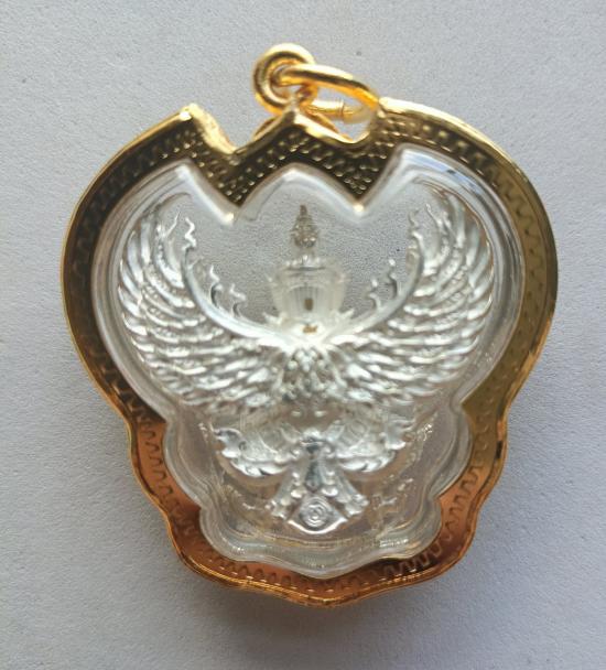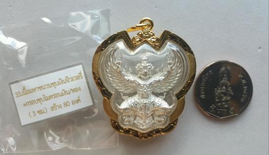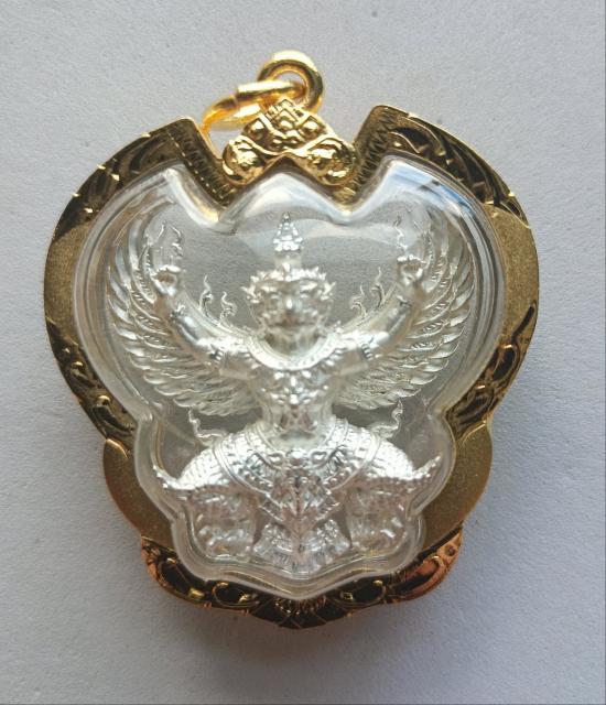 วัดใจเคาะเดียวแดงจ้า พญาครุฑ หลวงพ่อโชคชัย วัดน้ำดิบ เนื้อมหาชนวนชุบเงินจิวเวอร์รี่ พร้อมเลี่ยมกรอบทองไมครอน ขนาด3เซน เคาะเดียวแดงจ้า