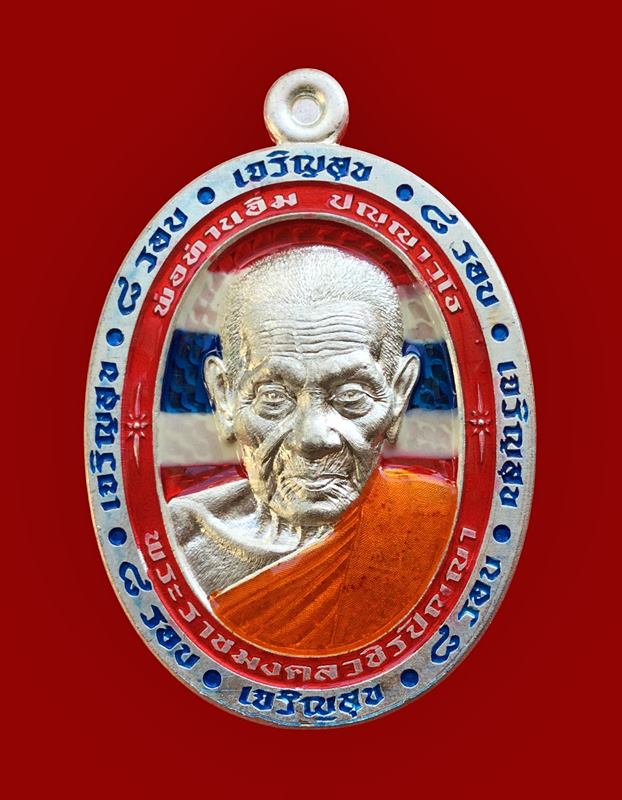+!!เคาะเดียวllดง ตลอดสาย!!+ เหรียญ เจริญสุข หลวงปู่อิ่ม ปญฺญาวุโธ วัดทุ่งนาใหม่ จ.นครศรีธรรมราช ปี 2567 (เนื้อชุบเงิน ลงยาลายธงชาติ เลขสวย 53) พร้อมกล่องเดิมครับ