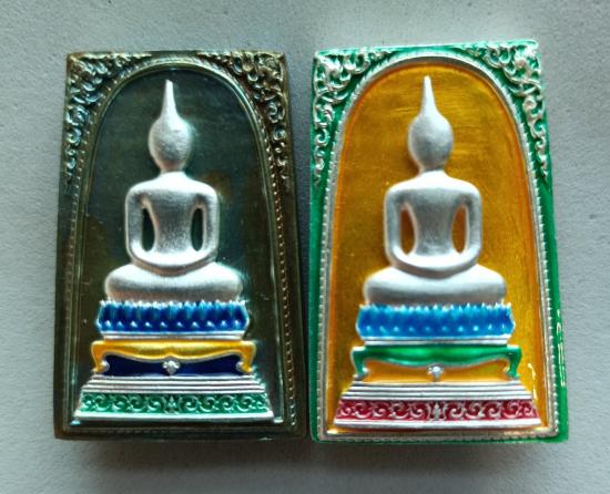 วัดใจเคาะเดียวแดงจ้า สมเด็จวัดระฆัง งานพุทธศิลป์ ลังนำฤกษ์ เนื้อบรอนซ์ผิวพาติน่าร ุ้งองค์ชุบเงินลงยา+ เนื้อบรอนซ์ผิวเงินลงยาสีเหลืององค์ชุบเงินลงยา เคาะเดียวแดงจ้า