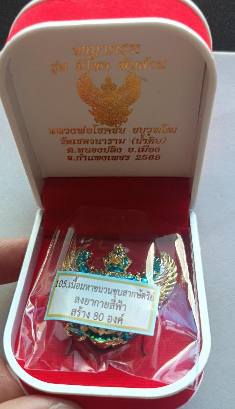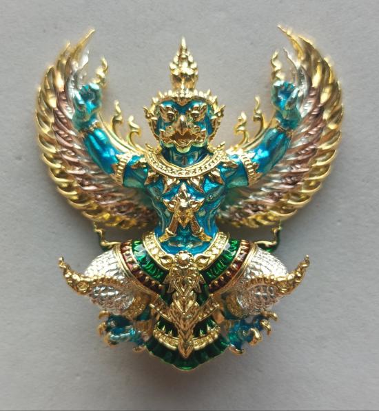วัดใจเคาะเดียวแดงจ้า พญาครุฑ หลวงพ่อโชคชัย วัดน้ำดิบ เนื้อมหาชนวนชุบ3กษัตริย์ลงยากายฟ้า หมายเลข4 ขนาด4เซน เคาะเดียวแดงจ้า
