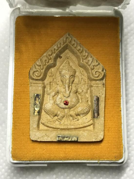 พระพิฆเนศ เนื้อผง ฝังพลอย ตะกรุด 3 กษัตริย์ รุ่น โชคดีมีสุข หลวงปู่หงษ์ วัดเพชรบุรี จ.สุรินทร์ ปี2547 พร้อมกล่องเดิม