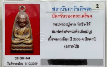 ชื่อพระเครื่อง หลวงพ่อทวดหลังหนังสือมีหูปี่2505พร้อมบัตร