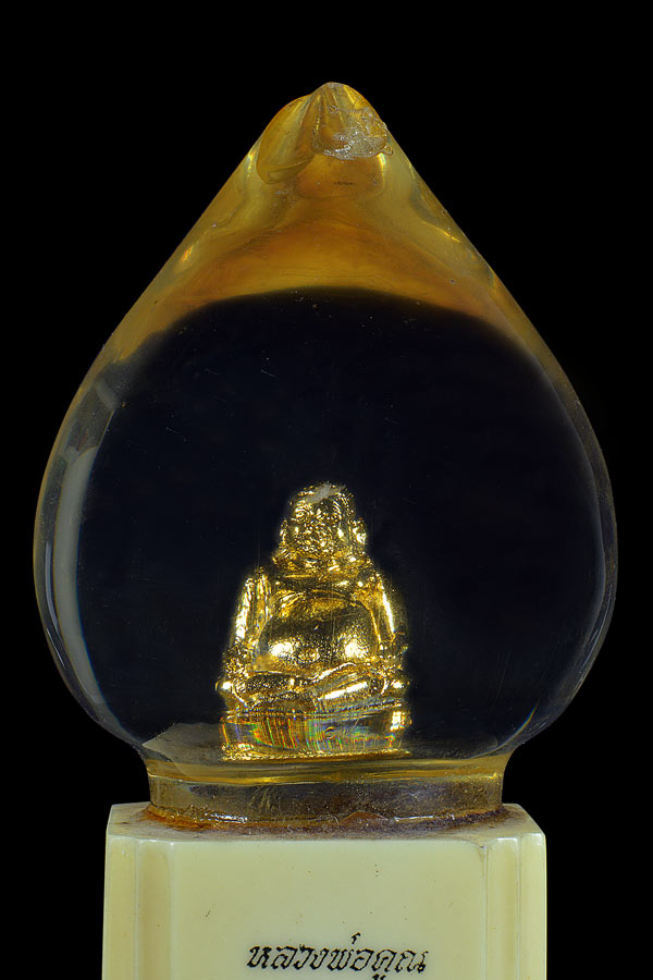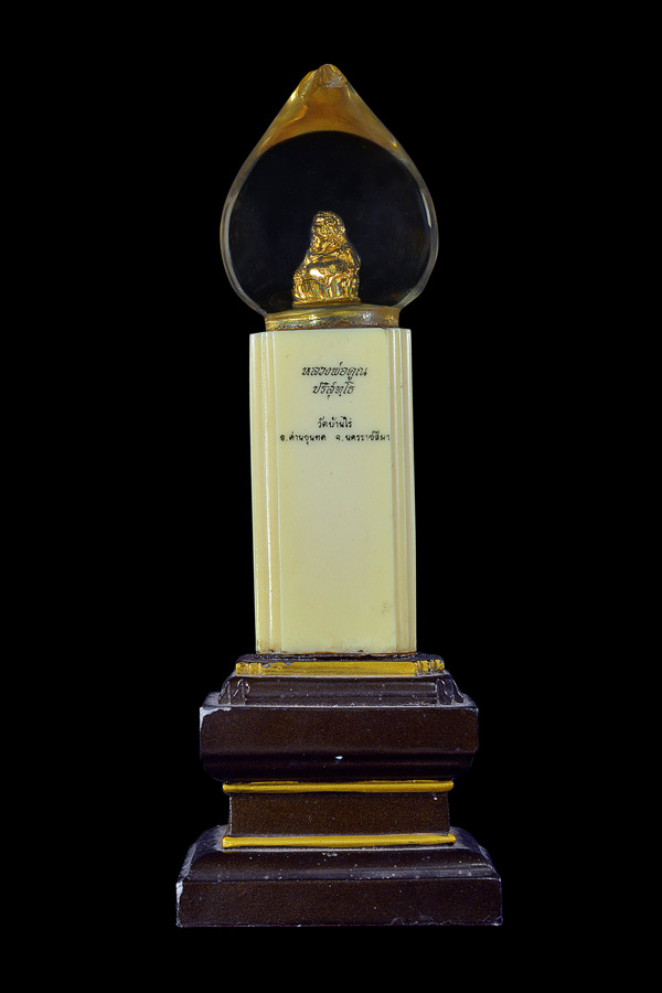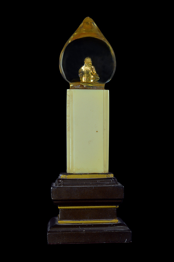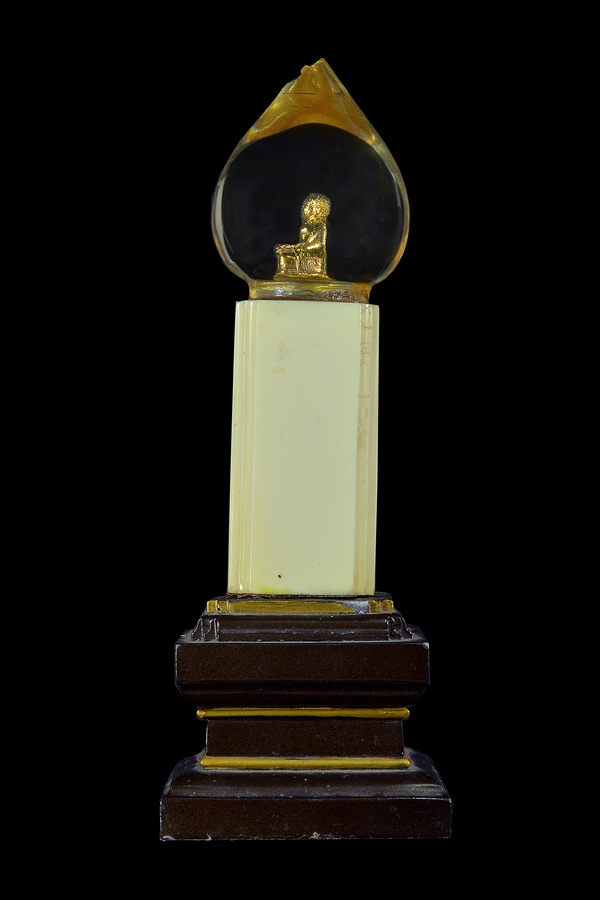 เชิงเทียนจำลอง ( ฐานกว้าง 3 นิ้ว , สูง 8 นิ้ว เนื้อซิลิก้า ) เปลวใสบรรจุ พระสังกัจจายน์ รุ่น เทพประธานเททอง ( กะไหล่ทอง ) พ.ศ.2535 ( ปลายบิ่น พิจารณาให้ชอบก่อนประมูล )