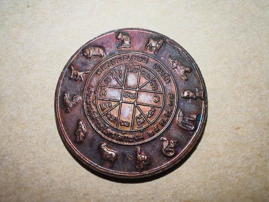 เหรียญกลม ราหู หลังยันต์ดวง 12 นักกษัตริย์ ลพ.เกษม เขมโก ปี2538
