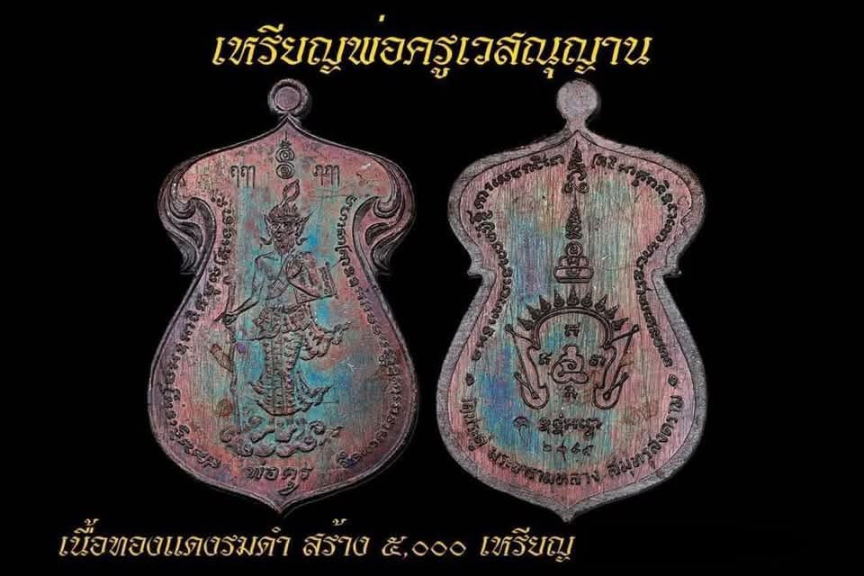 เหรียญพ่อครูเวสณุญาณ ปี 65 พระมหาสุรศักดิ์ วัดประดู่ พระอารามหลวง จ.สมุทรสงคราม เนื้อทองแดงรมดำ จำนวน 2 เหรียญ สวยๆเงาๆ