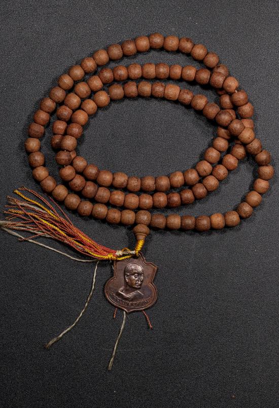 (เคาะแดง1900) +บัตรสมาคม สร้อยประคำหลวงพ่ออุตตมะ เนื้อไม้
