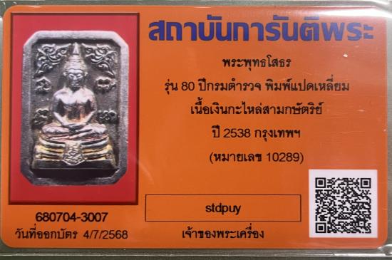 หลวงพ่อโสธร 80ปี กรมตำรวจแปดเหลี่ยม เนื้อเงินสามกษัตริย์ เลข 10289 พร้อมบัตรรับรองจากเว็บ G