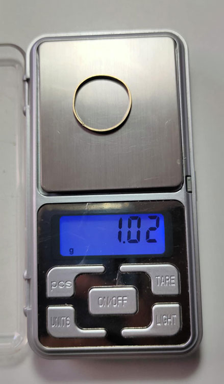 แหวน 8K สแตมป์ 333 น้ำหนักประมาณ 1.02 กรัม กว้าง 2 ซม
