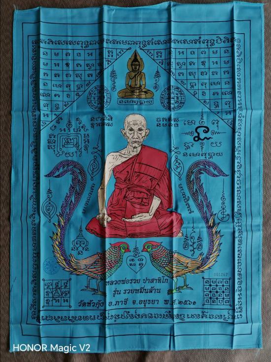 ผ้ายันต์ รวยหมื่นล้าน หลวงพ่อรวย วัดตะโก จังหวัดอยุธยา จำนวน 2 ผืน หมายเลข #1267 และ #152