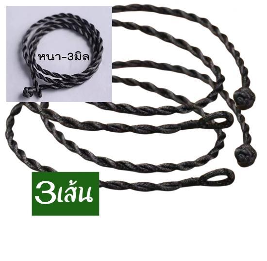 ( 3 เส้น) สร้อยคอคล้องพระแบบไหมญี่ปุ่นเกลียวมันเงา