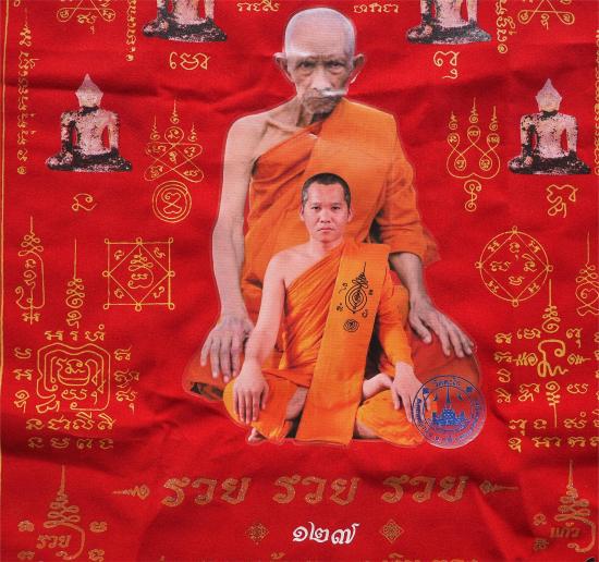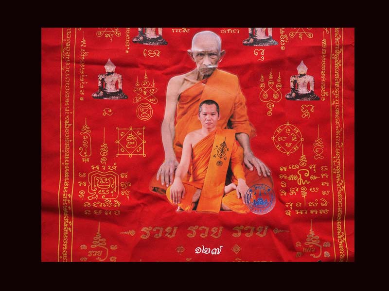 ผ้ายันต์ แก้วแหวนเงินทอง หลวงพ่อรวย วัดตะโก จังหวัดอยุธยา จำนวน 1 ผืน สีแดง หมายเลข #127