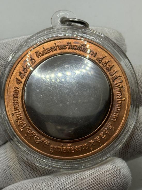 เหรียญคันฉ่องผ่าตะวันเหนือดวง พิมพ์ใหญ่ ขนาด 4.9 ซม. วัดพุทไธศวรรย์ เนื้อทองแดง สวยๆ เลี่ยมพร้อมแขวน 2