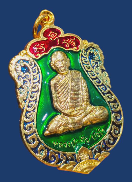 เหรียญเสมาสุขใจ ปี 2550 เนื้อกะไหล่ทองลงยาน้ำเงิน เลข522 หลวงปู่แผ้ว ปวโร |