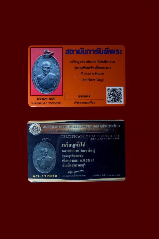 เหรียญจตุรพิธพรชัย หลวงพ่อกวย ปี 2518 (นิยมสุด)