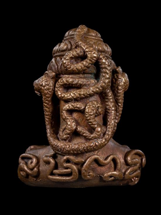 ปิดตาพังพะกาฬเนื้อทองแดงเถื่อนรุ่นมงคลจักรวาลพุทธาคมเขาอ้อ2545