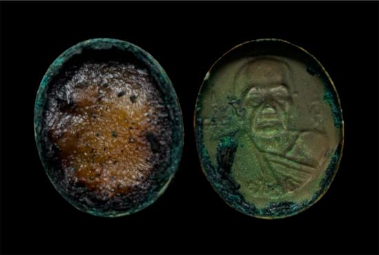 ภายในบรรจุสีผึ้งเสาร์ห้ามหาเศรษฐี ที่หลวงปู่หมุนหุงและเสกเมื่องานเสาร์ห้า 2543 ที่วัดป่าหนองหล่ม จ.สระแก้ว