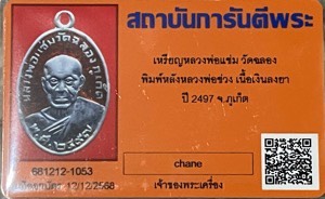 เหรียญหลวงพ่อแช่ม วัดฉลอง ปี 2497 เนื้อเงินลงยาแดง