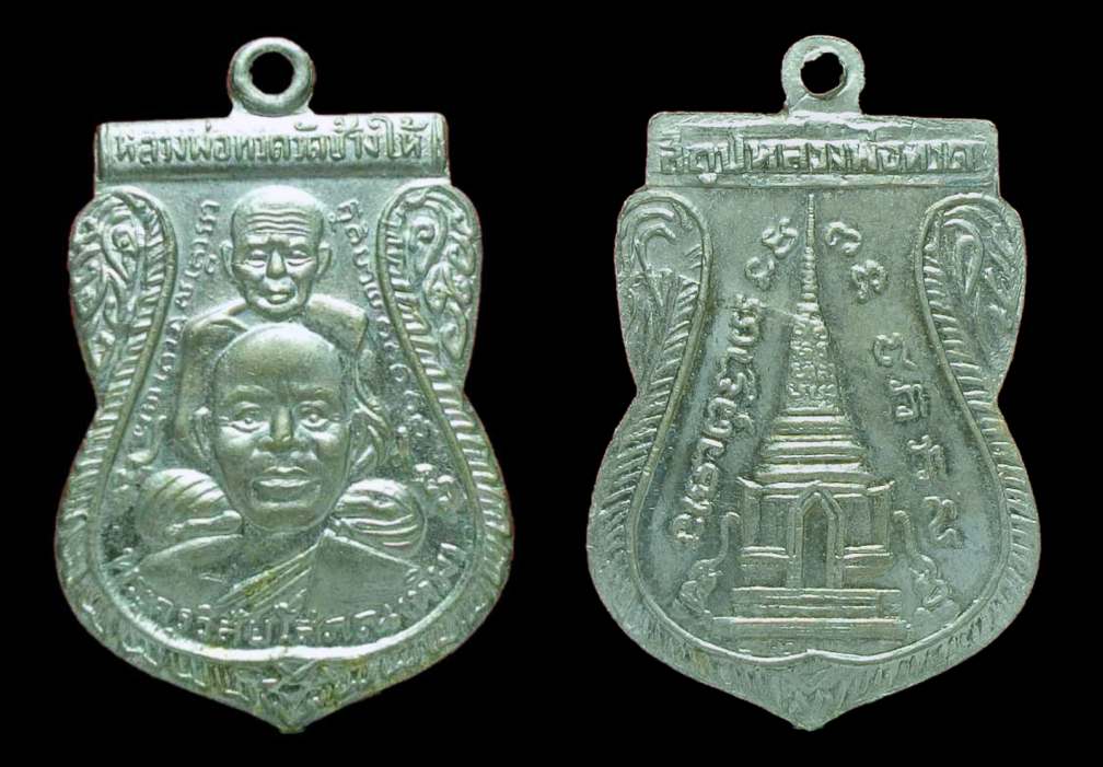 เหรียญพุทธซ้อน บล๊อคหน้า 09 หลังเลข 5 เจดีย์ฟ้าผ่า เนื้ออัลปาก้าชุบนิกเกิ้ล ปี11