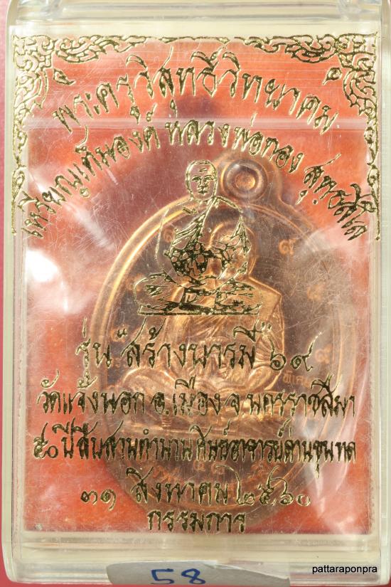เหรียญหลวงพ่อทอง รุ่นสร้างบารมี ปี2560 เนื้อทองแดงไม่ตัดปีกตอก๙รอบ กรรมการ หมายเลข 58