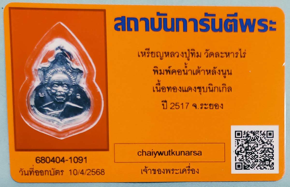 เหรียญหลวงปู่ทิม วัดละหารไร่ พิมพ์คอน้ำเต้าหลังนูน ชุบนิกเกิ ล ปี 2517 จ.ระยอง