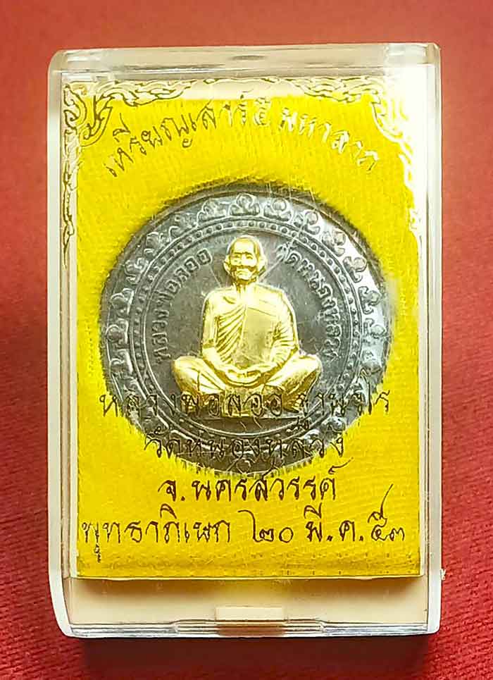 รายละเอียด เหรียญมหาลาภ หลวงพ่อลออ วัดหนองหลวง เนื้อนวะหน้าทอง หมายเลข 197 ปี 2553 พร้อมกล่องเดิมตามภาพครับ (องค์สุดท้าย)