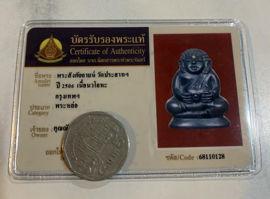 วัดใจ40 พระสังกัจจายน์ วัดประสาทบุญญาวาส เนื้อนวโลหะ หน้าผากทองคำ ปี2506 บัตรนิตยสารพระท่าพระจันทร์
