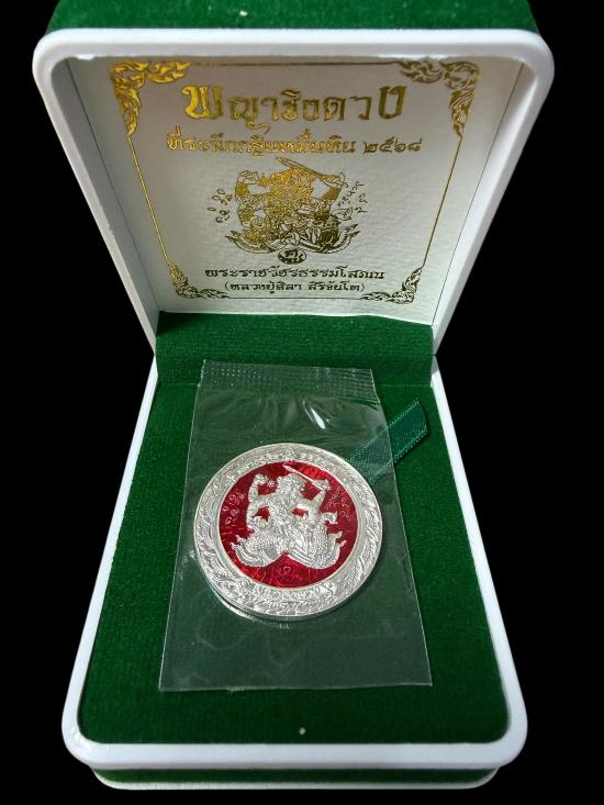 วัดใจ เหรียญพญาชิงดวง หลวงปู่ศิลา เนื้อเงินลงยาแดง เลข 137 สวยๆ มีกล่องครบครับ