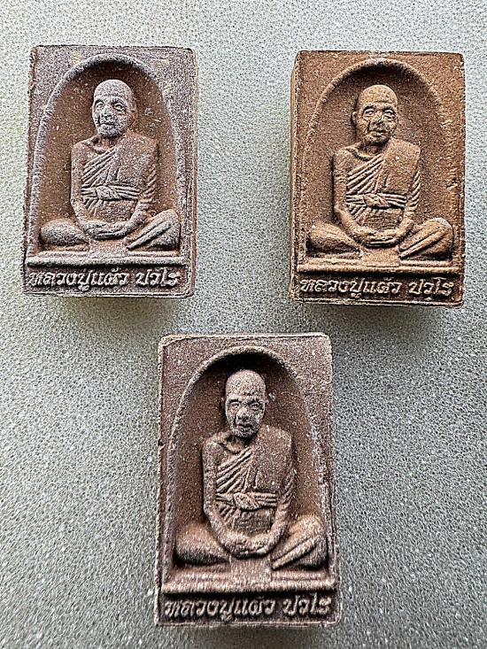เคาะเดียวเเบ่งปัน....พระผงรูปเหมือน หลวงปู่เเผ้ว ปวโร วัดกำเเพงเเสน เนื้อไม้เทพธาโร ยุคต้นๆ ออกวัดกำแพงแสน ปี 50 3 องค์ยกชุด