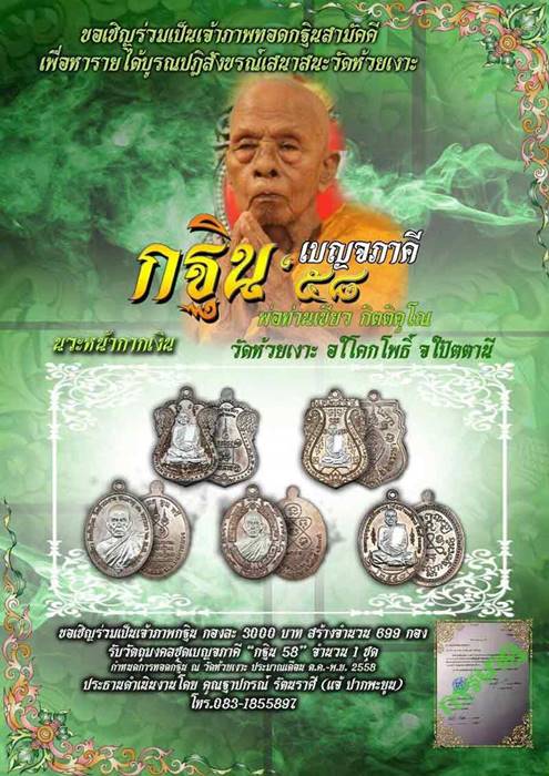 วัดใจ...ยกชุด ชุด5เหรียญ 5พิมพ์(ไม่มีกล่อง)(จอง3,000) เนื้อนวะโลหะ หน้ากากเงิน รุ่น กฐิน 58 พ่อท่านเขียว วัดห้วยเงาะ อำเภอโคกโพธิ์ จังหวัดปัตตานี