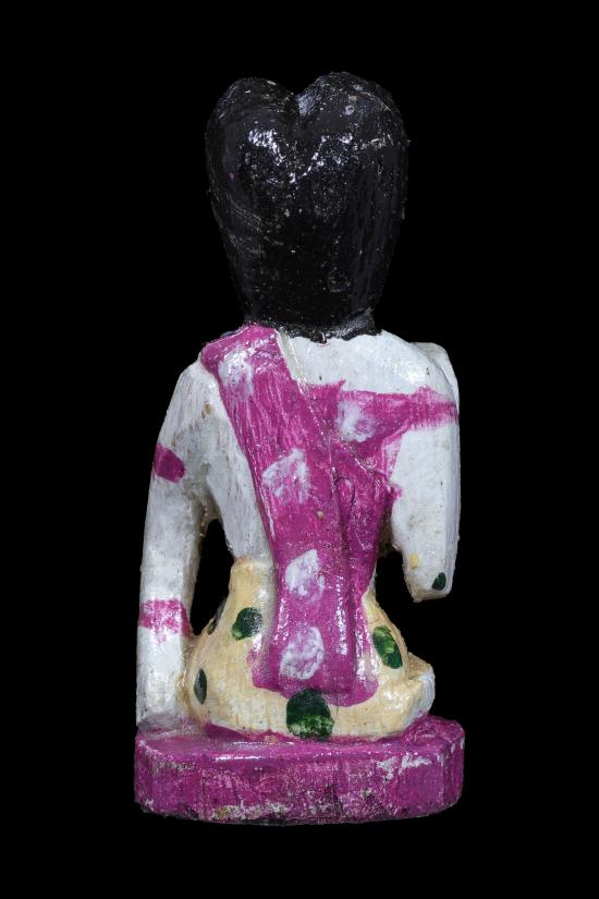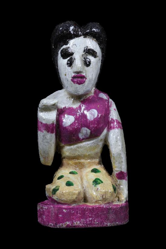 นางกวักหลวงพ่อย้อย วัดใหม่สุคนธาราม จ.นครปฐม เคลือบแชแล็ค สีฝุ่น จัดอยู่ในชุดเครื่องรางยอดนิยม จ.นครปฐม นางกวักหลวงพ่อแกะมาจากไม้ตะเคียนตายพรายหรือยืนต้นตายที่วัดท่าน จัดเป็นไม้ที่มีอาถรรพ์แรงหาไม่ได้ |