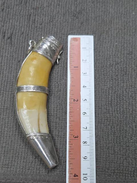 เครื่องราง เขี้ยวเสือแท้ ขนาด 3.6นิ้ว เขี้ยวบน เขี้ยวโปร่งเก่า เลี่ยมเงินสั่งทำสวยๆครับ