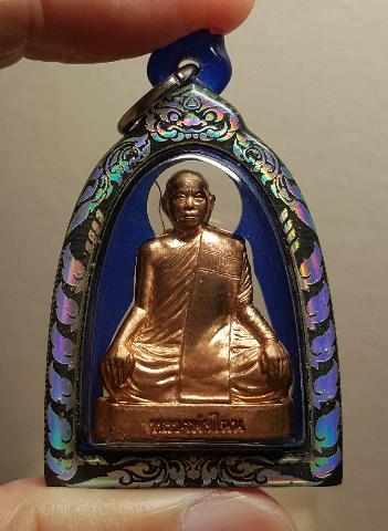 รูปเหมือนปั๊มรุ่นแรก เนื้อทองแดง หลวงพ่อไฉน วัดสังฆปรีดี เลี่ยมพลาสติกรักษาผิว ไม่ผ่านการแขวนบูชา