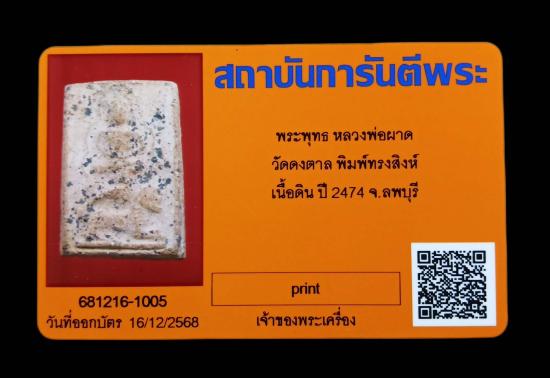 พระหลวงพ่อผาด วัดดงตาล พิมพ์ทรงเสือ ปี๒๔๗๔ (หลวงพ่อปาน ปลุกเสก) พร้อมบัตรรับรอง ครับ