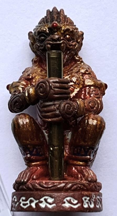 หนุมานมหาปราบไพรี รุ่นแรก พระอาจารย์ทิน วัดชายนา ปี59 เนื้อสัมฤทธิ์ลงยา ตะกรุดเงินผสม ก้นอุดผง เม็ดทองแดงเสก เลข700 เคาะเดียว