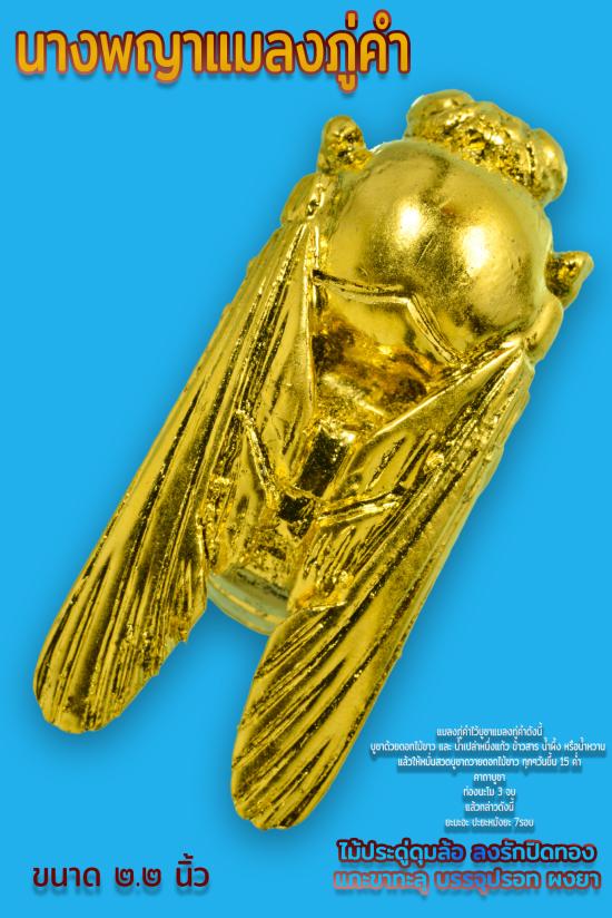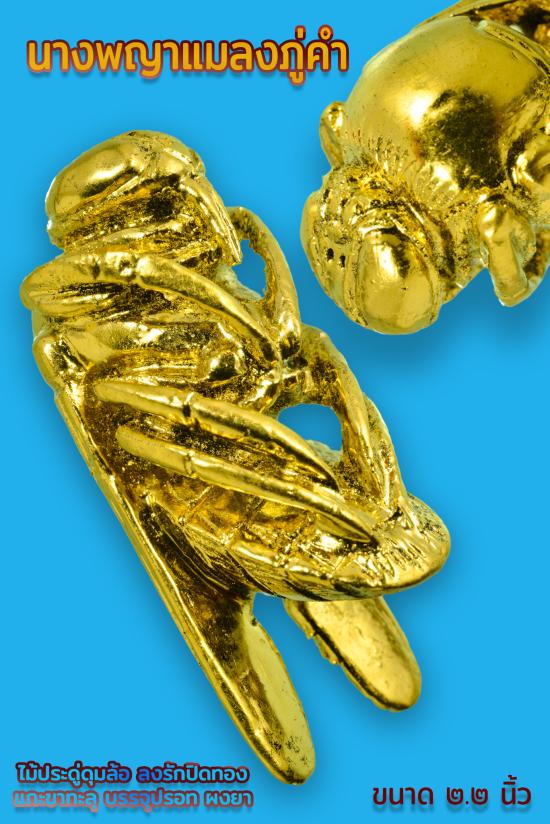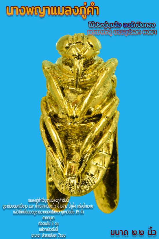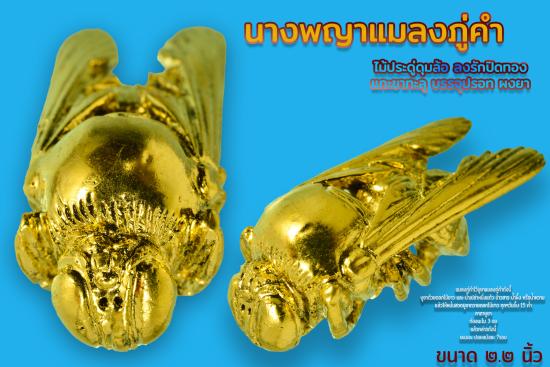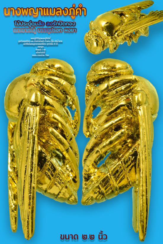 แมลงภู่คำ วัสดุหลัก เนื้อไม้ดุมล้อ ส่วนประกอบ มีปรอทบรรจุภายใน การตกแต่ง ลงรักปิดทอง ขนาด 2.2 นิ้ว