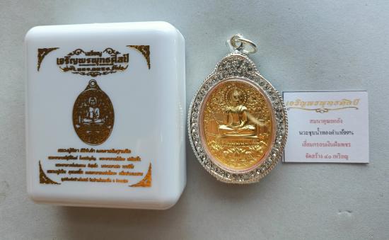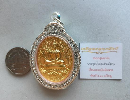 วัดใจเคาะเดียวแดงจ้า เหรียญเจริญพรพุทธศิลป์ หลวงปู่ศิลา หลวงพ่อสุริยันต์ พระอาจาร ย์ต้อม หลวงปู่เวิ่น เสก เนื้อนวะชุบน้ำทองคำแท้99% เลี่ยมกรอบ เงินอิตาลีฝังเพชร ตัวแถมยกลัง เคาะเดียวแดงจ้า